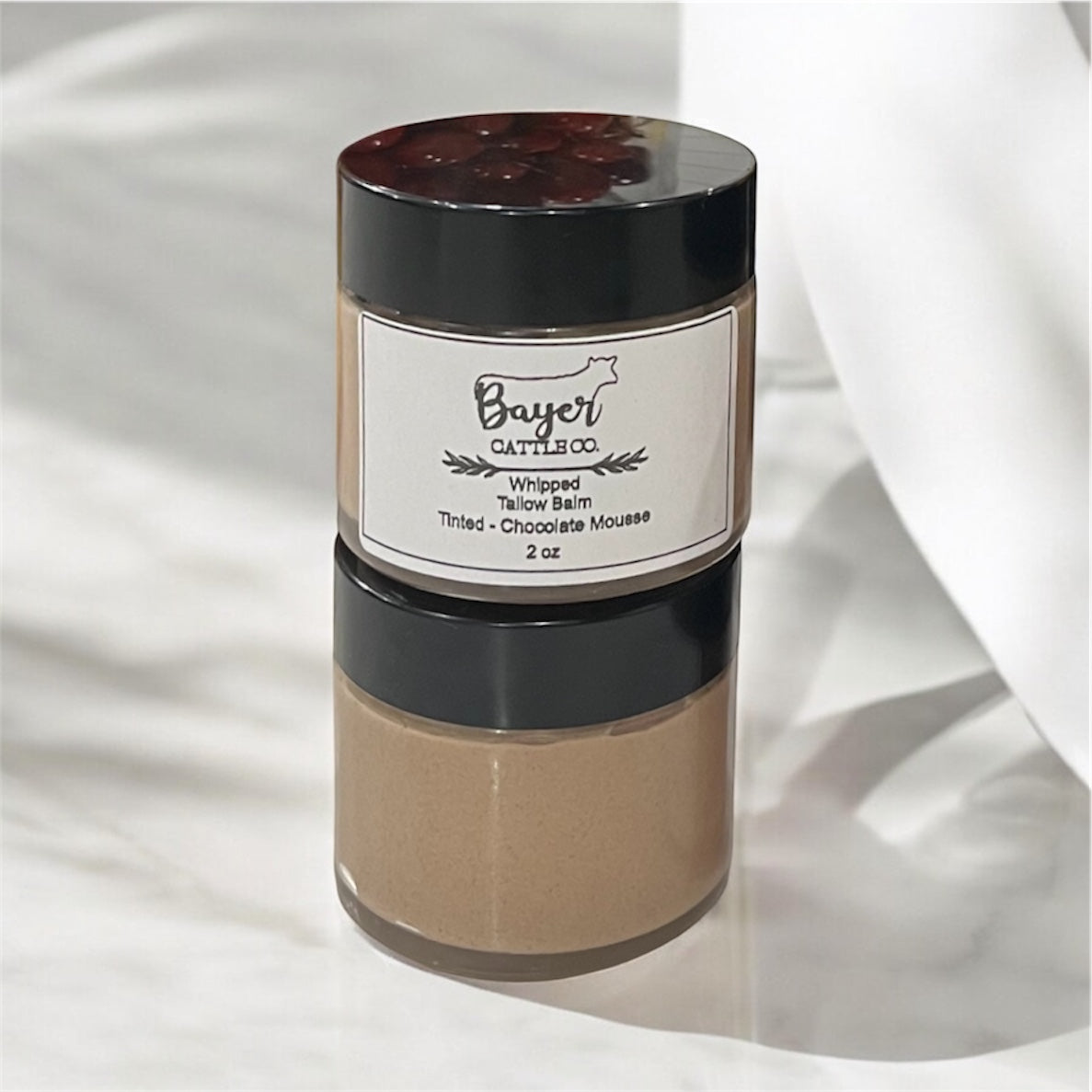 We only use 4 all natural ingredients in our tinted tallow balm: 100% grass fed beef tallow, organic extra virgin olive oil, organic cocao powder, and organic essential oils.